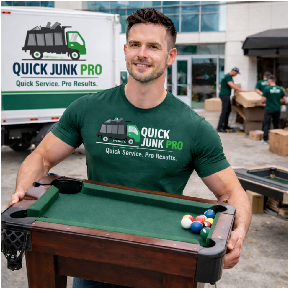 At Quick Junk Pro, we are a locally trusted team providing reliable pool table hauling service. Our goal is to make junk removal easy, fast, and affordable for homeowners.