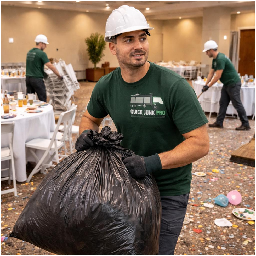 At Quick Junk Pro, we specialize in corporate event junk removal and private event cleanouts of all sizes. Instead of worrying about trash, furniture, décor, or leftover materials, trust our fully licensed and insured professionals to take care of everything efficiently.